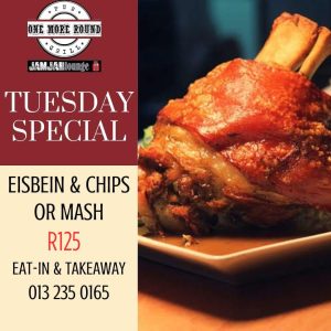 JamJar Lounge specializes in contemporary cuisine with a diverse menu that caters to a range of tastes. The offerings include both hearty and light options, with standout dishes such as beef carpaccio, blue cheese snails, garlic snails, and crumbed mushrooms, which have earned praise for their flavor and presentation. Main courses feature items like steaks, fish and chips, and creative pizzas (e.g., the "Lowvelder Pizza"), alongside vegetarian-friendly choices such as strawberry and biltong salad. The menu is known for its playful naming conventions, adding a touch of humor and personality to the dining experience. Specials, like the Friday lamb curry, highlight seasonal or local flavors, reflecting the region’s culinary influences. Prices are reasonable, typically ranging from R150–R350 per person (approximately $8–$20 USD, depending on exchange rates), making it accessible yet slightly upscale for Lydenburg.